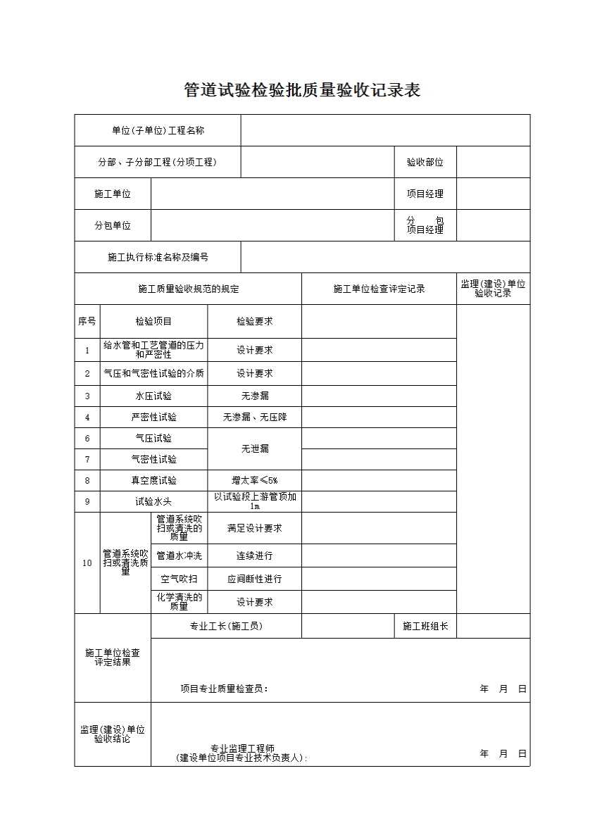 9.5.3 管道试验的检验项目、 要求和方法应符合表9.5.3 规定。