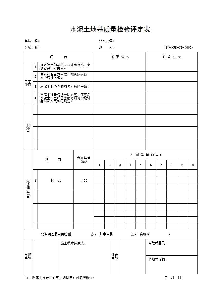 009 水泥土地基质量检验评定表