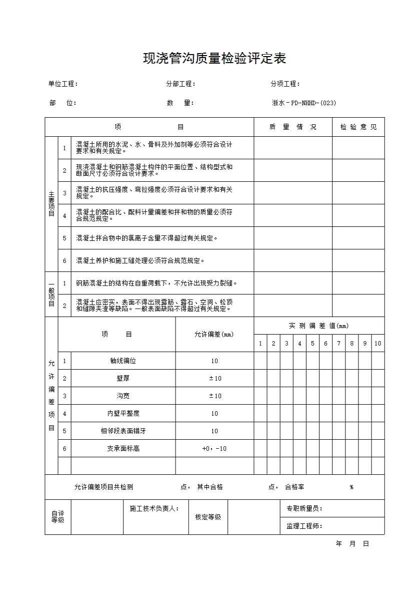 表格名称:023 现浇管沟质量检验评定表