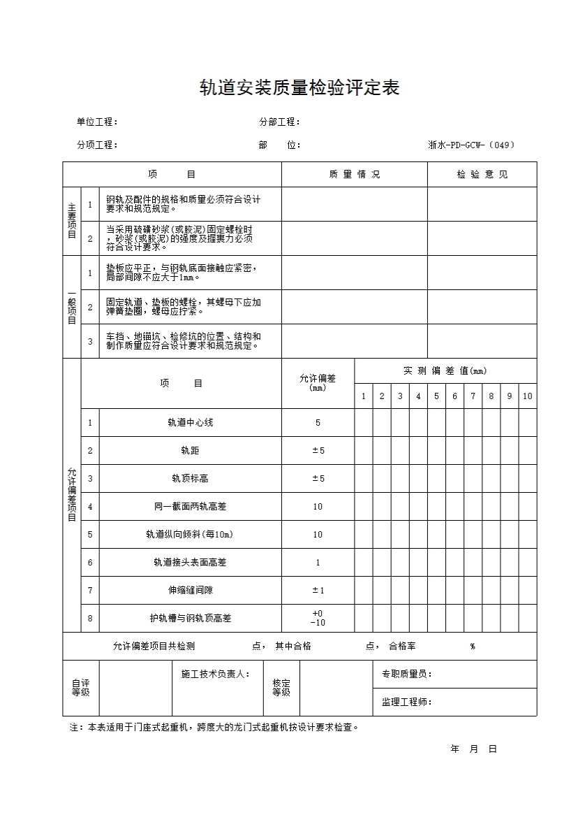 049 轨道安装质量检验评定表