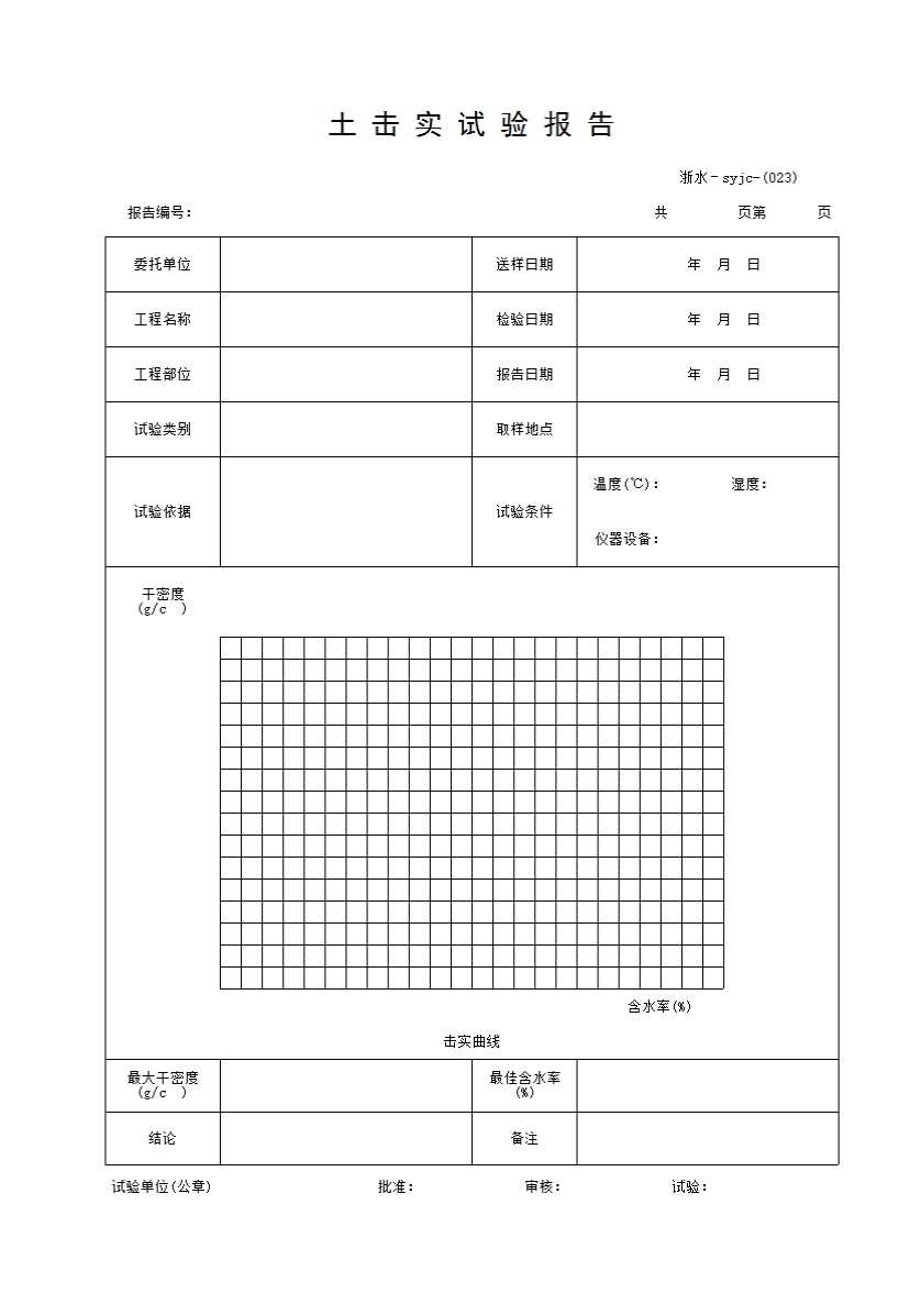 表格名称:023 土击实试验报告