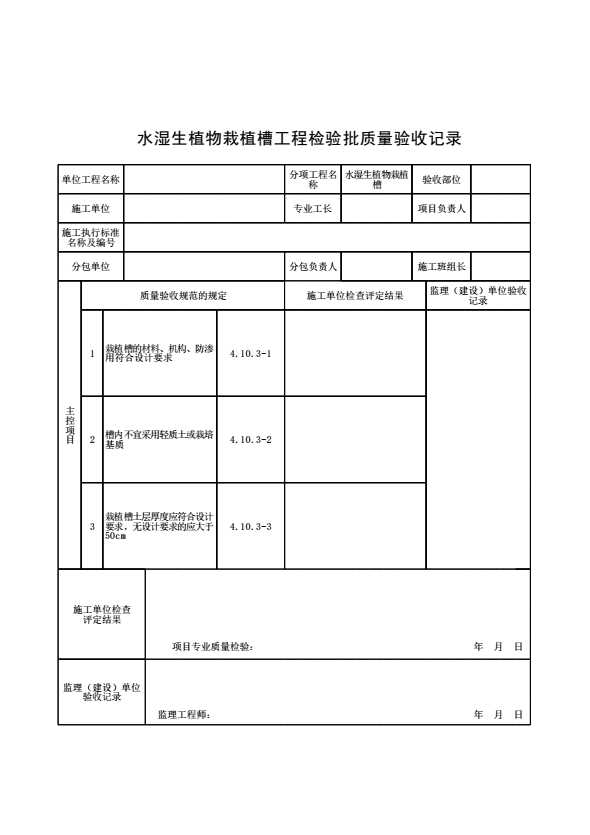 表格名称:水湿生植物栽植槽工程检验批质量验收记录