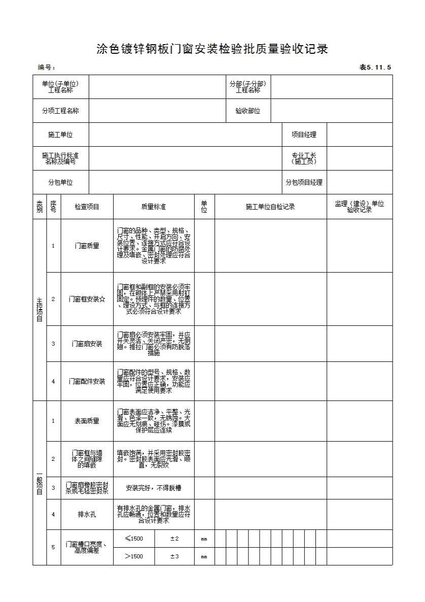 表格名称:5.11.5 涂色镀锌钢板门窗安装检验批质量验收记录