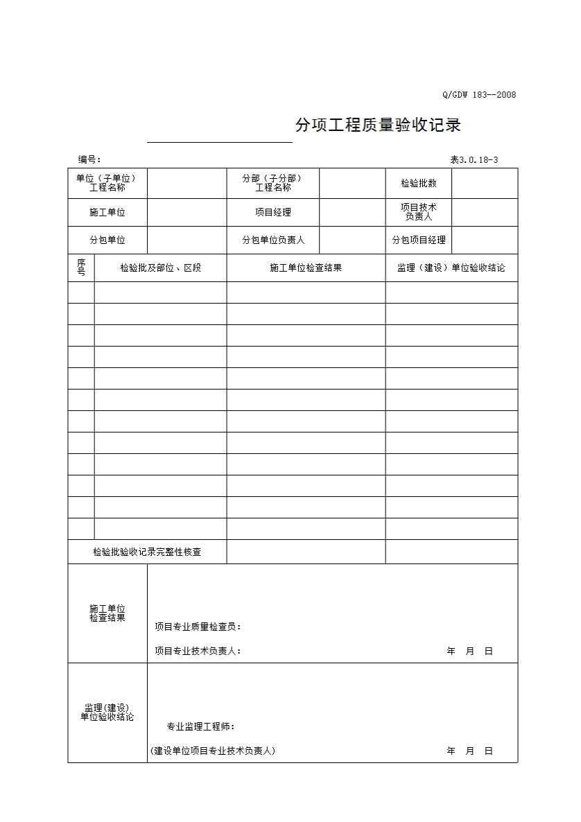 表格名称:3.0.18-3_________分项工程质量验收记录表