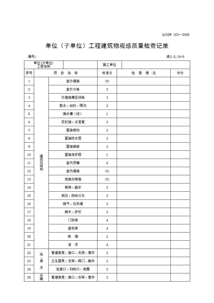 3.0.18-8_________单位(子单位)工程建筑物观感质量记录表