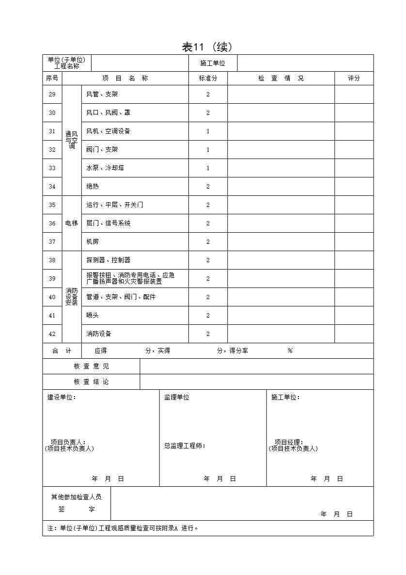 表11 单位(子单位)工程建筑物观感质量检查记录