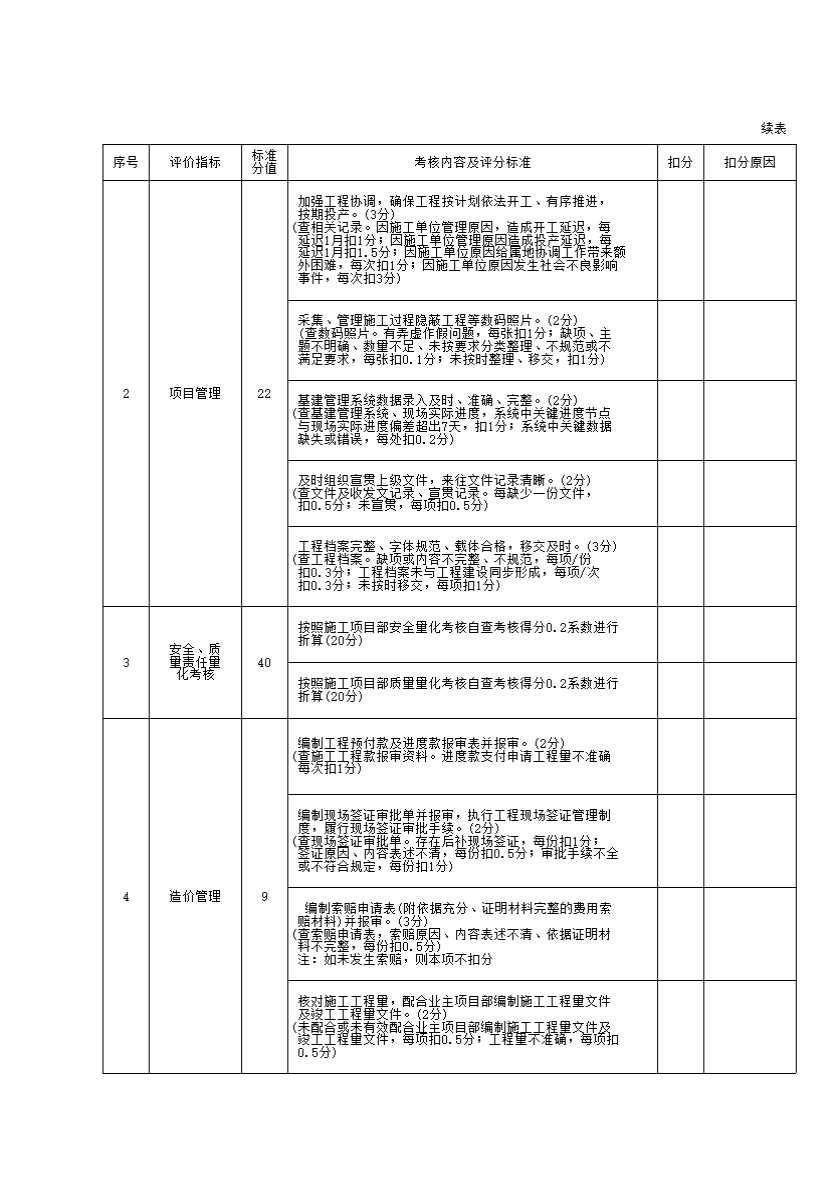 表格名称:YPJ5:施工项目部综合评价表
