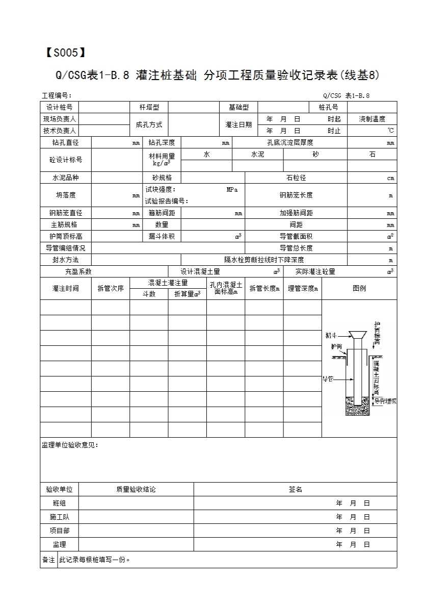 表格名称:QCSG 表 1-B.8 灌注桩基础 分项工程质量验收记录表(线基8)