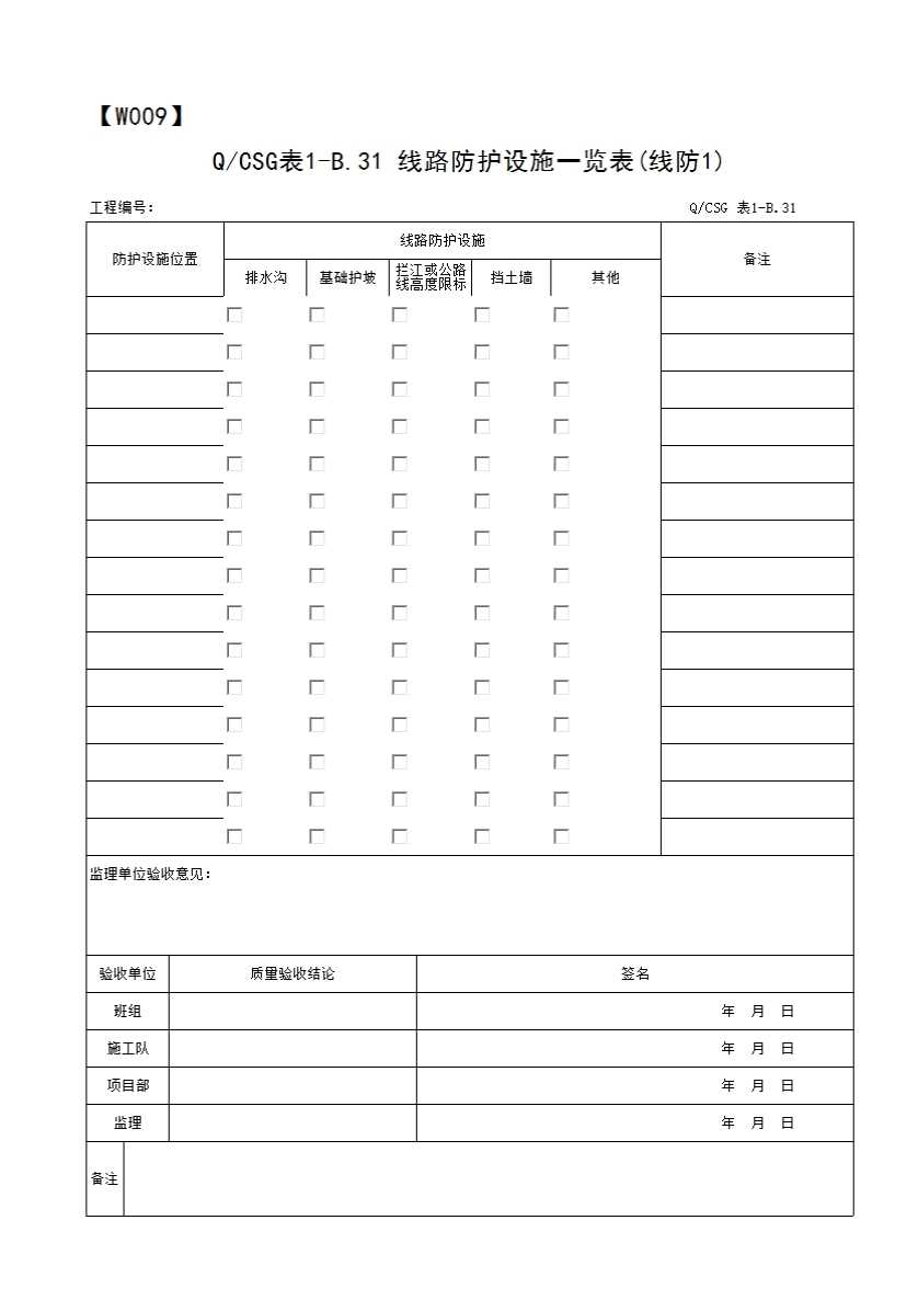 QCSG 表 1-B.31 线路防护设施一览表(线防1)