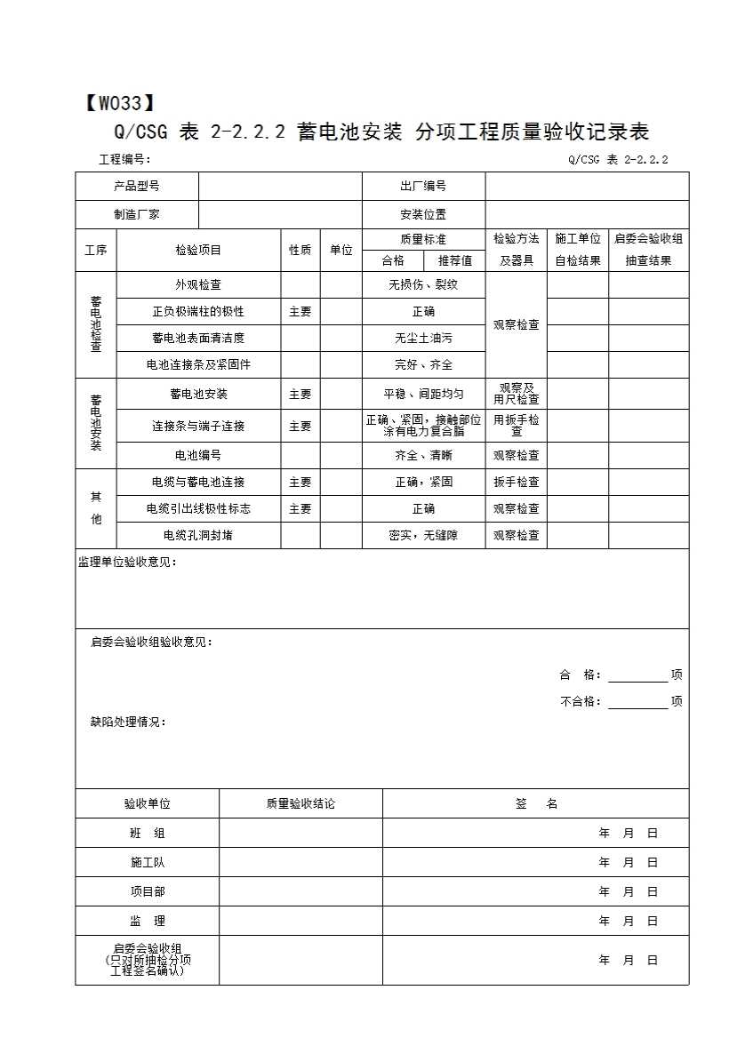 QCSG 表 2-2.2.2 蓄电池安装 分项工程质量验收记录表