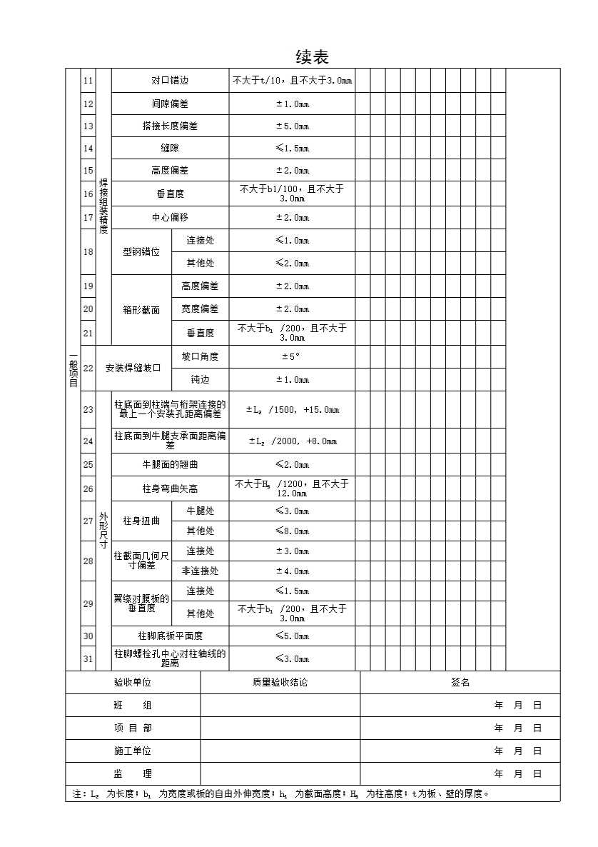 表格名称:QCSG 表 3-6.4.3 钢构件(单层钢柱)组装工程检验批质量验收记录表(一)
