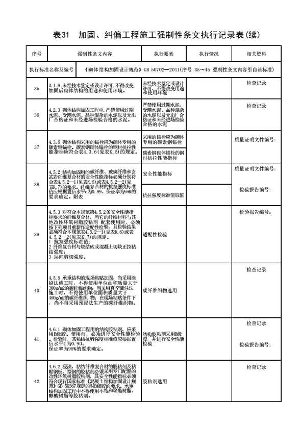 表31 加固、纠偏工程施工强制性条文执行记录表