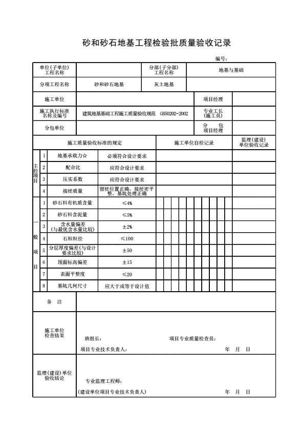 表格名称:砂和砂石地基工程检验批质量验收记录