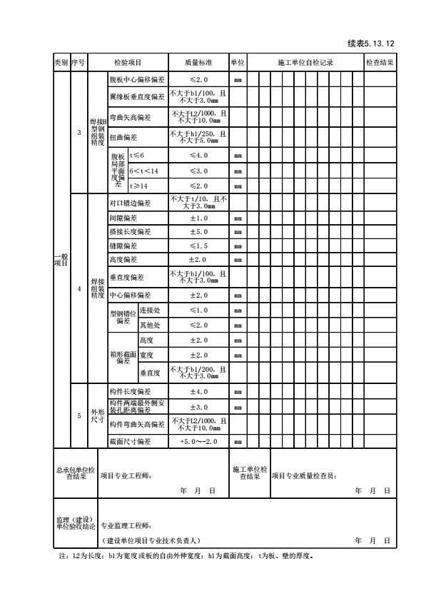 表格名称:[符合表5 13.12]表6.9.13钢构件(墙架、檩条、支撑系统)组装工程检验批质量验收记录