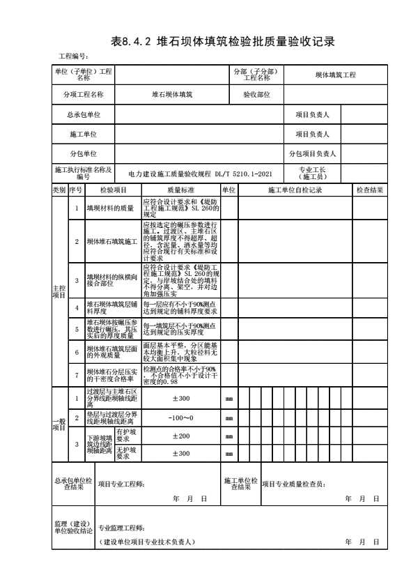 表格名称:表8.4.2堆石坝体填筑检验批质量验收记录