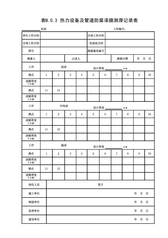 表格名称:表B.0.3 热力设备及管道防腐漆膜测厚记录表