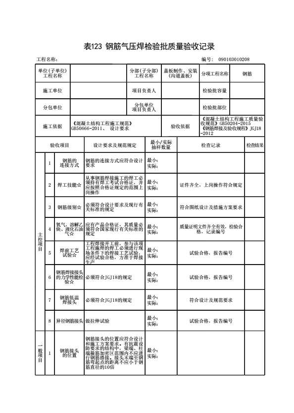 表格名称:090103010208 钢筋气压焊检验批质量验收记录