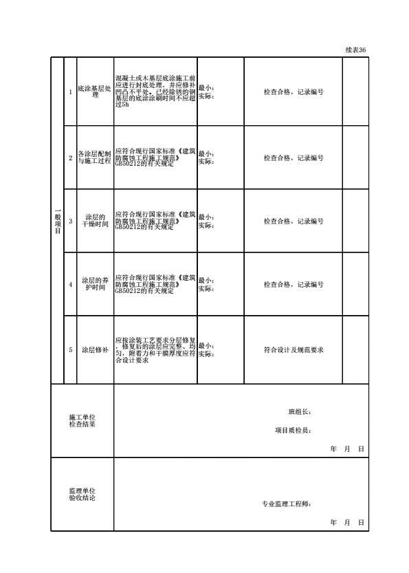 表格名称:100101061309 涂料类防腐蚀工程检验批质量验收记录
