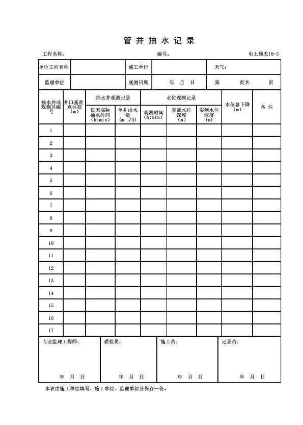 电力建设土建工程施工、试验及验收标准表式 第1部分 施工