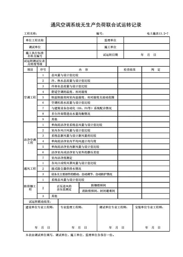 电土施表13.2-7 通风空调系统无生产负荷联合试运转记录