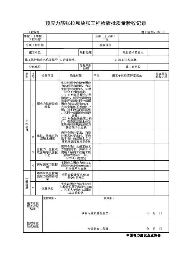表格名称:电土验表5.10.18 预应力筋张拉和放张工程检验批质量验收记录
