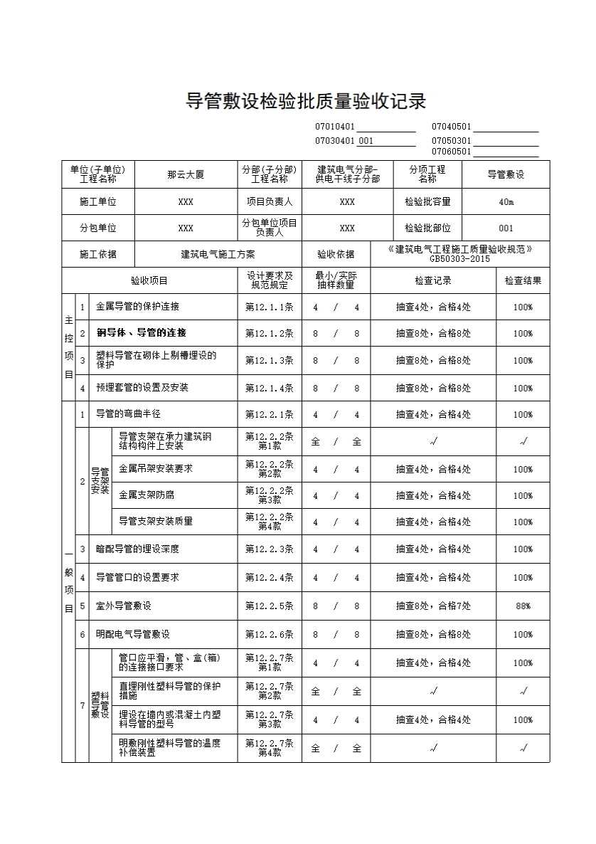 检查数量:第1款、第2款全数检查,第3款、第4款按每个检验批的导管总数抽查10%,且各不得少于1根(处),并应覆盖不同的敷设场所及不同规格的导管。