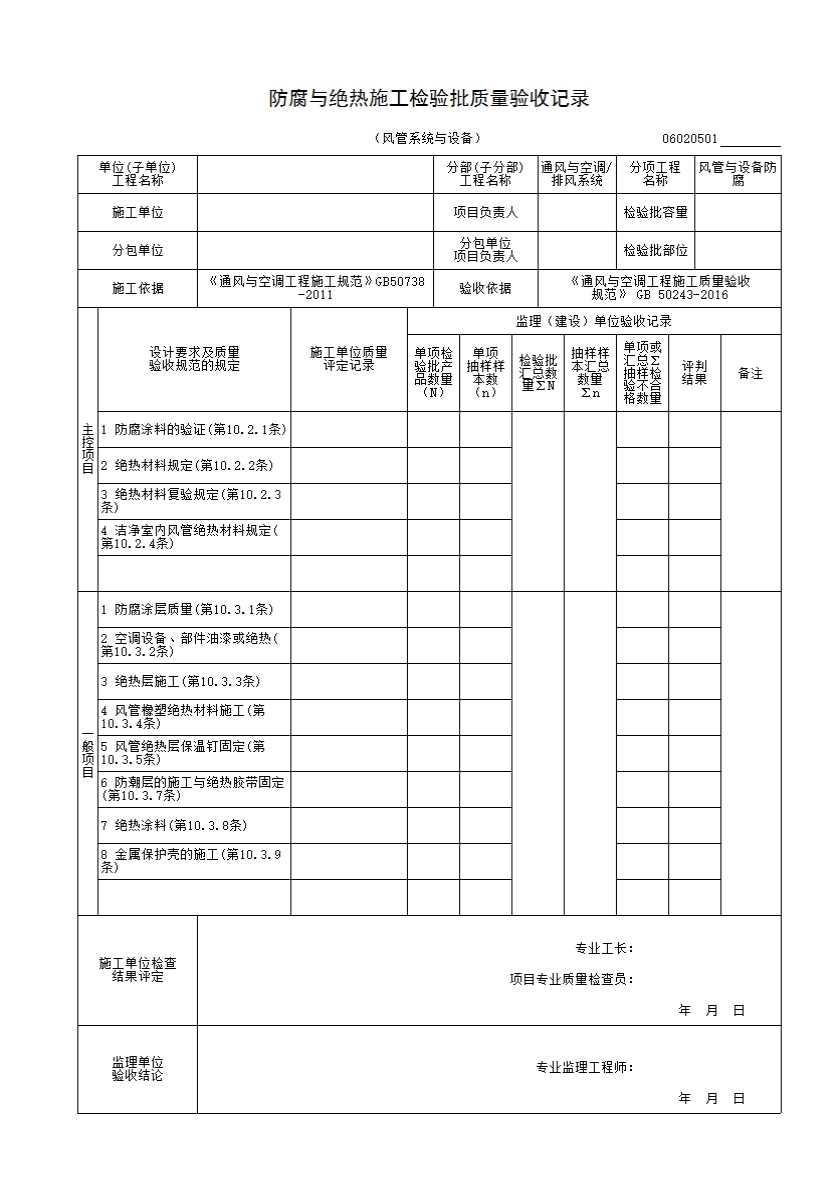 06020501_防腐与绝热施工检验批质量验收记录(风管系统与设备)