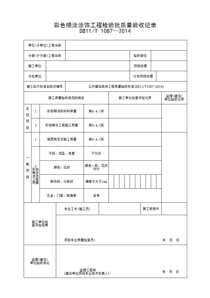 表格名称:彩色喷涂涂饰工程检验批质量验收记录