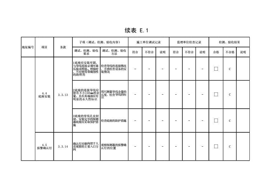 表格名称:表E.1 火灾报警控制器、消防联动控制器、火灾报警控制器(联动型)及其现场配接部件调试、检测、验收记录(续表30)