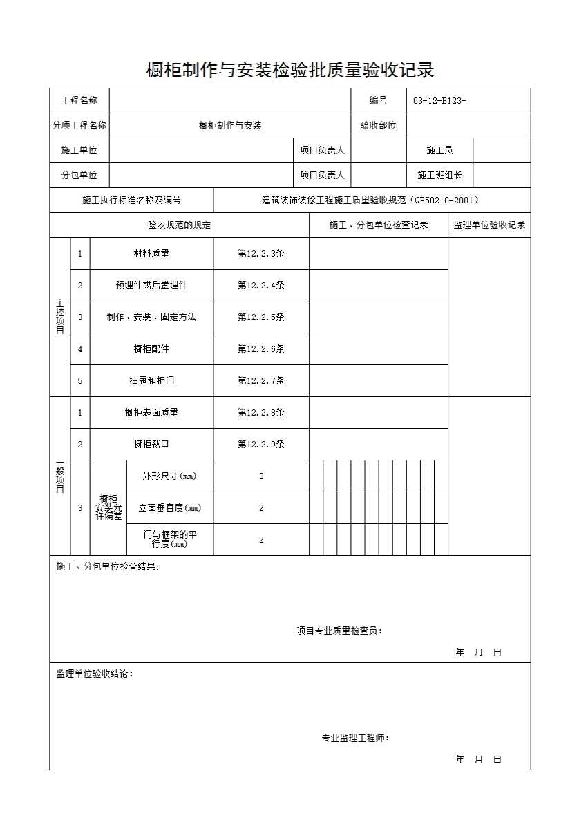 本节适用于位置固定的壁橱、吊柜等橱柜制作与安装工程的质量验收。