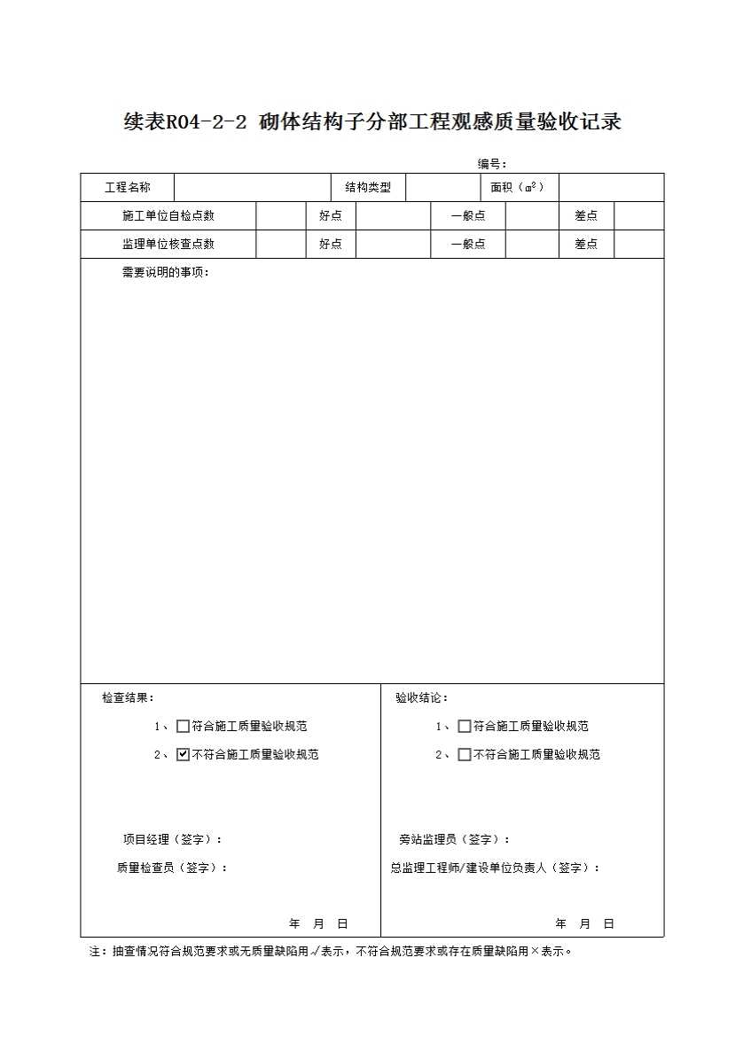 表格名称:表R04-2-2 砌体结构子分部工程观感质量验收记录