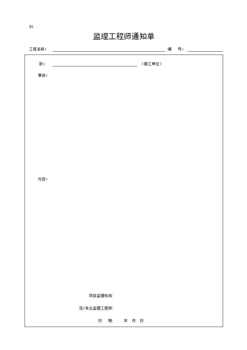 表格名称:B1 监理工程师通知单
