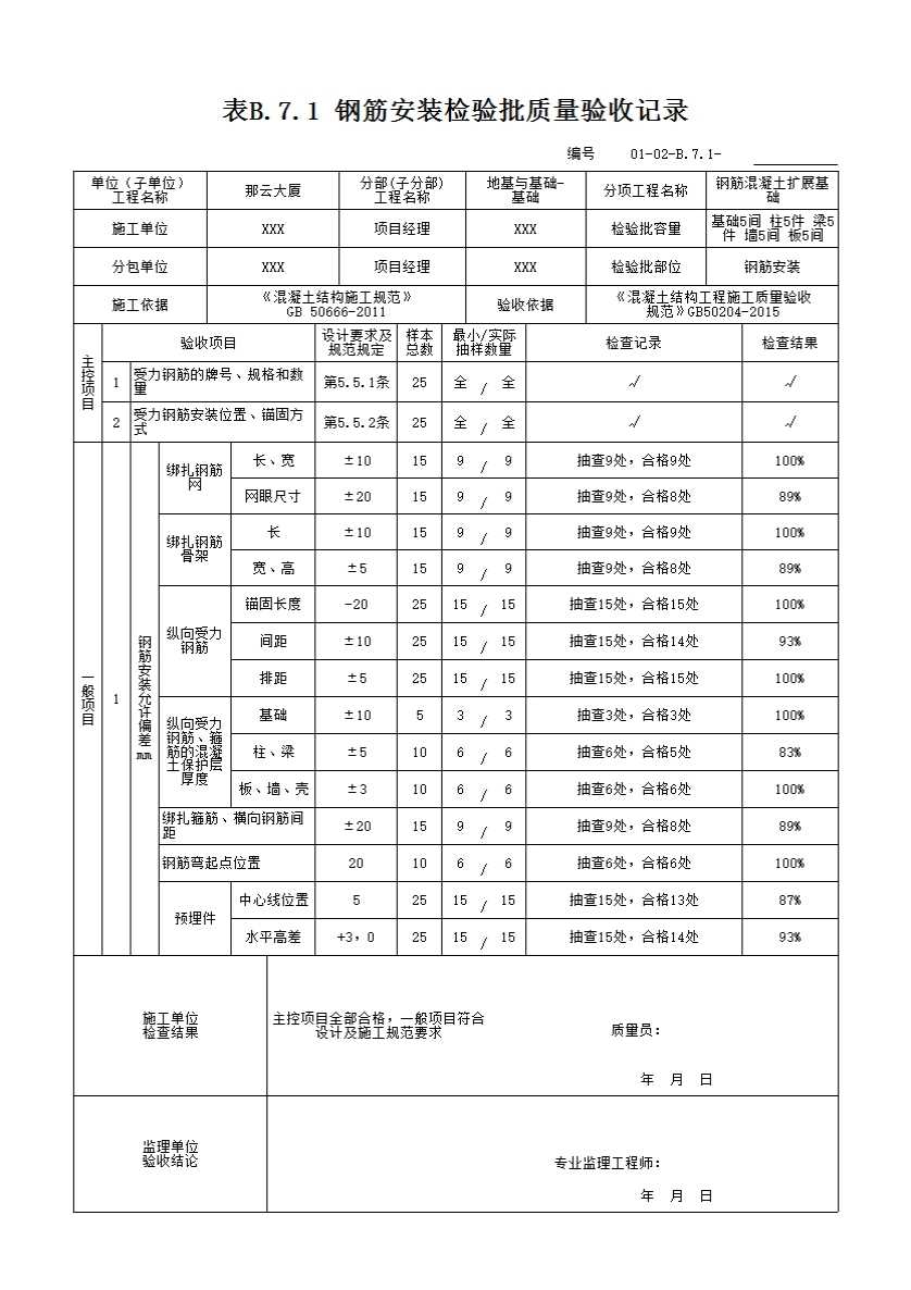 检查数量:在同一检验批内,对梁、柱和独立基础,应抽查构件数量的10%,且不应少于3件;对墙和板,应按有代表性的自然间抽查10%,且不应少于3间;对大空间结构,墙可按相邻轴线间高度5m左右划分检查面,板可按纵、横轴线划分检查面,抽查10%,且均不应少于3面。