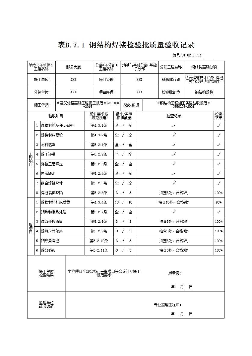 检查数量:资料全数检查;同类焊缝抽查 10%,且不应少于 3 条。