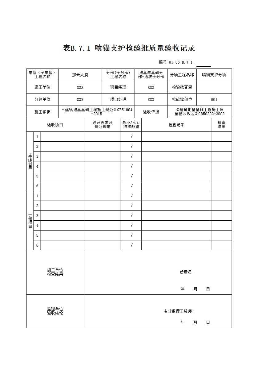 《GB50300-2013系列施工质量验收规范》表格(B.7.1格式)