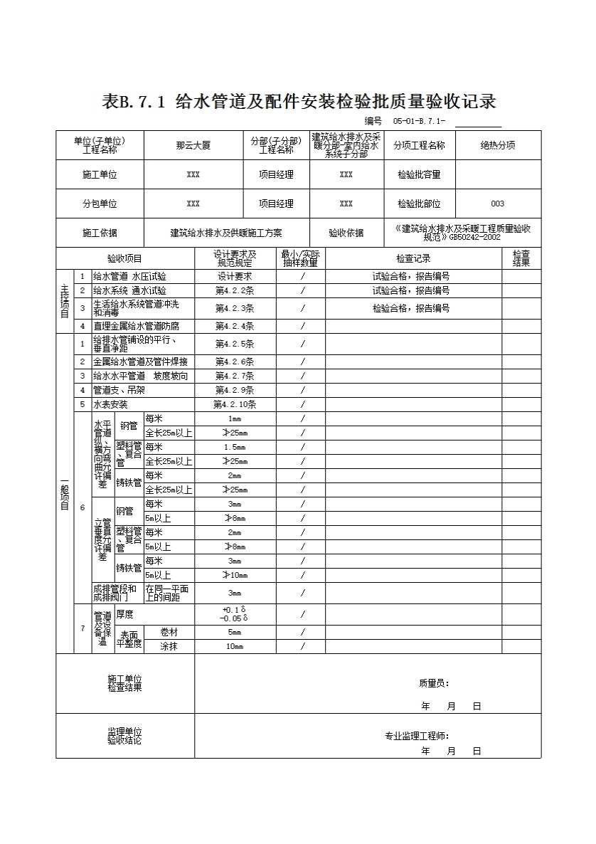 4.2.8给水管道和阀门安装的允许偏差应符合表4.2.8的规定。