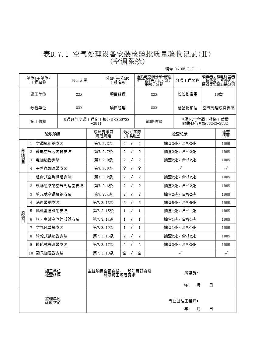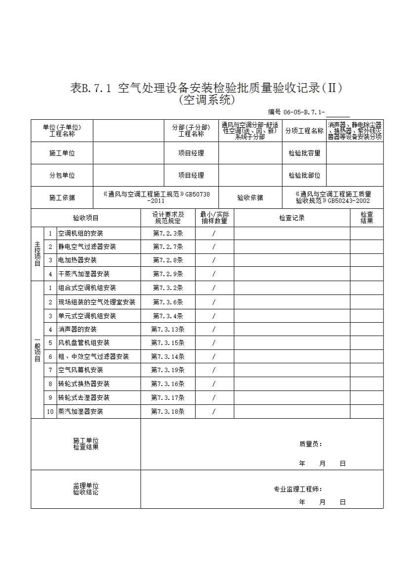 06050701_空气处理设备安装检验批质量验收记录(Ⅱ)(空调系统)