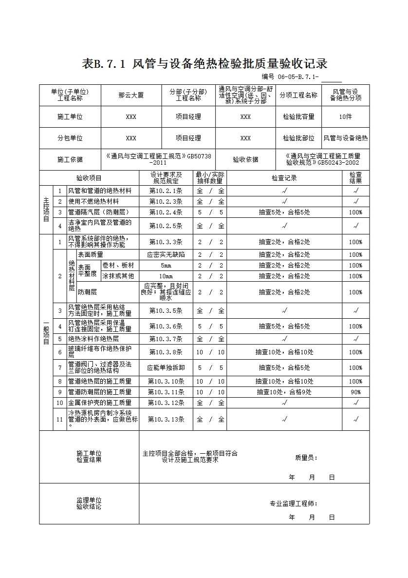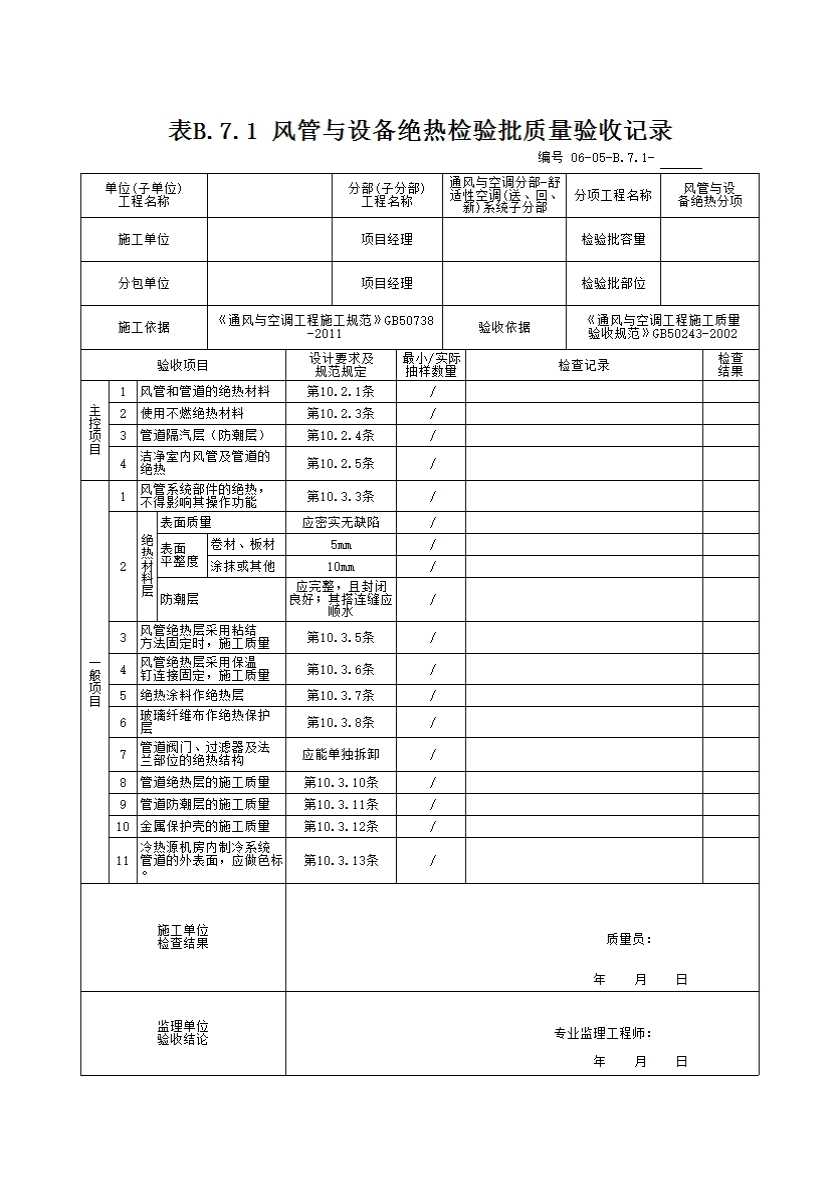 10.2.1 风管和管道的绝热,应采用不燃或难燃材料,其材质、密度、规格与厚度应符合设计要求。如采用难燃材料时,应对其难燃性进行检查,合格后方可使用。