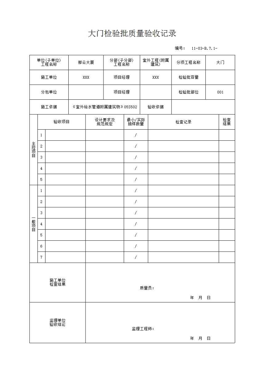 《GB50300-2013系列施工质量验收规范》表格(B.7.1格式)