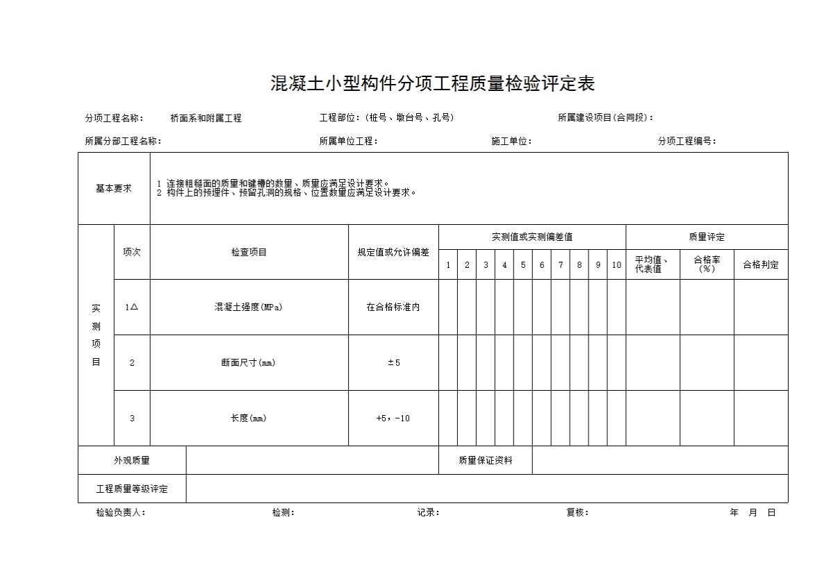 伸缩装置安装分项工程质量检验评定表