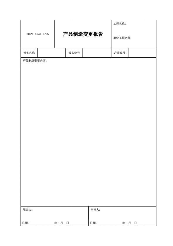表格名称:SH/T 3543-G705 产品制造变更报告