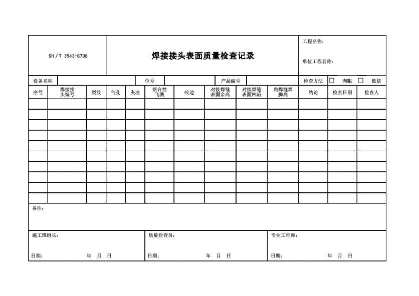 表格名称:SH/T 3543-G708 焊接接头表面质量检查记录
