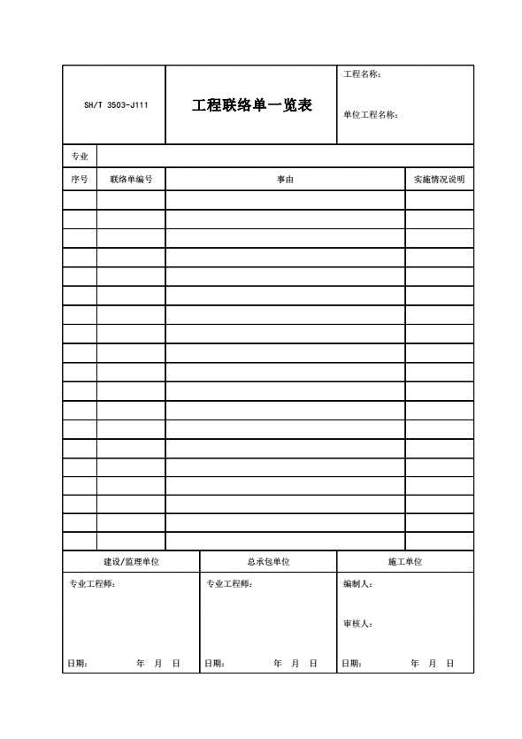 表格名称:SH/T 3503-J111 工程联络单一览表