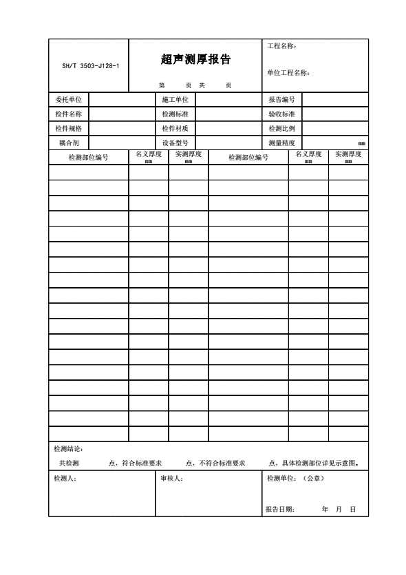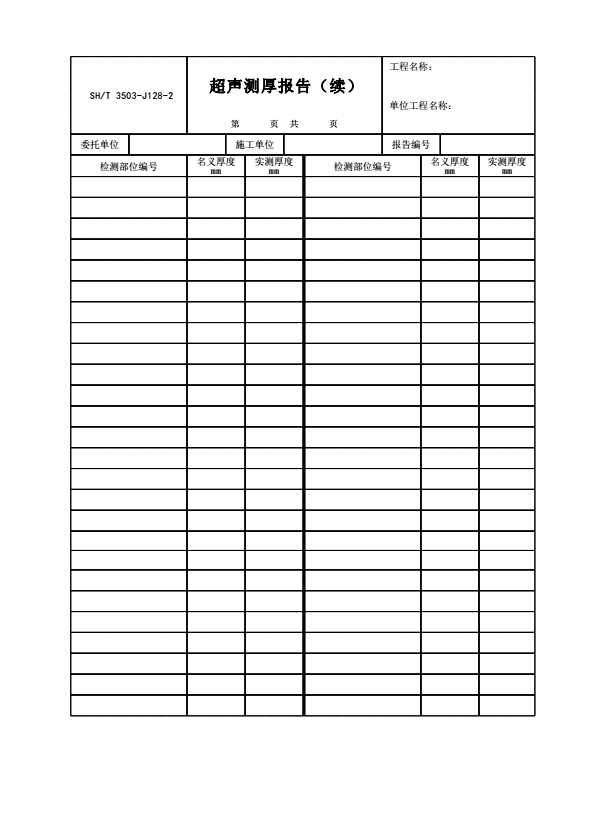 表格名称:SH/T 3503-J128 超声测厚报告