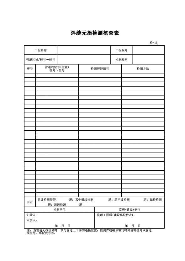 检-15 焊缝无损检测核查表