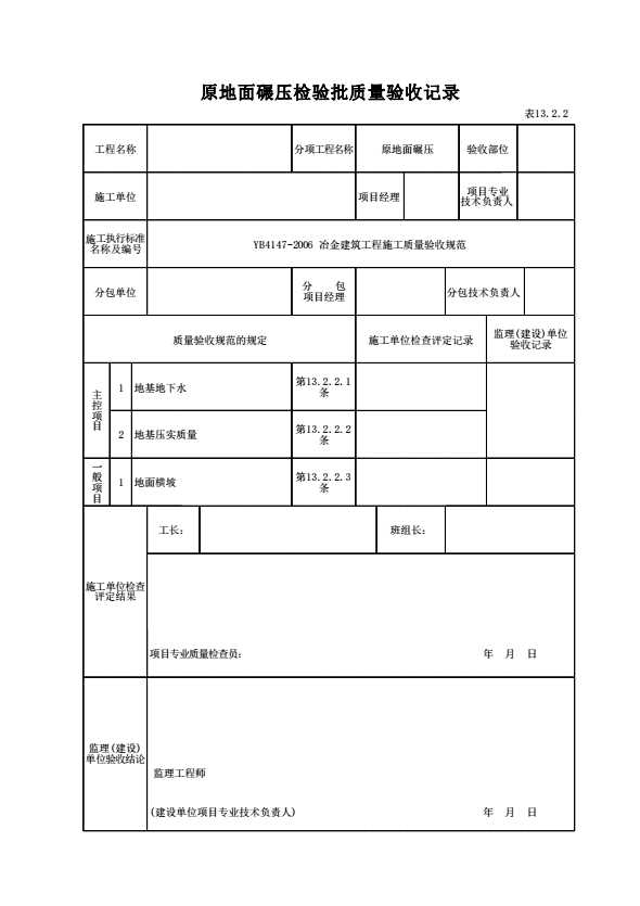 表格名称:表13.2.2 原地面碾压检验批质量验收记录