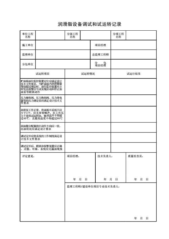 润滑脂设备调试和试运转记录