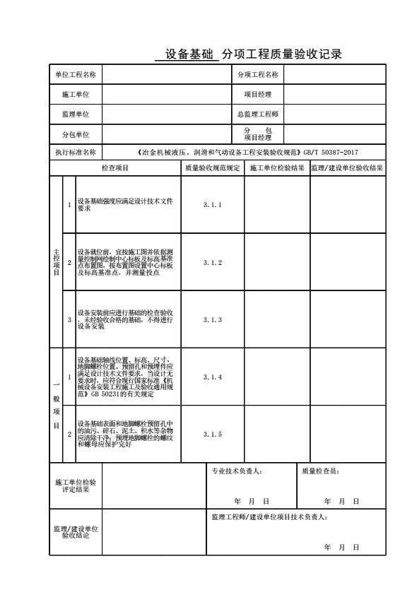 表格名称:设备基础分项工程质量验收记录