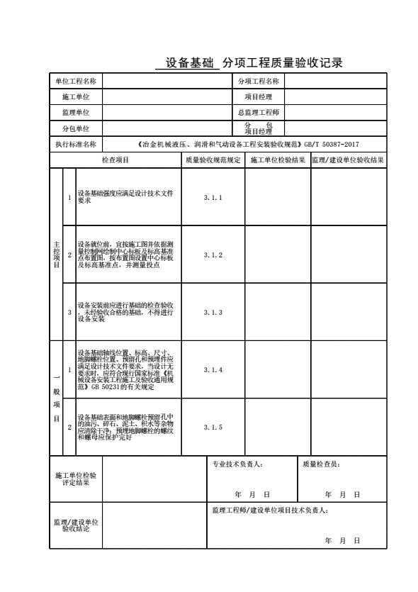 表格名称:设备基础分项工程质量验收记录