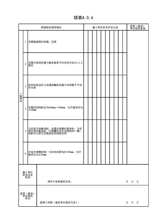 表格名称:表A.0.6 架设光缆检验批质量验收记录
